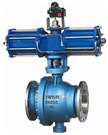 气动固定球阀是新一代高性能球阀,适用于长输管线和一般工业管线,其强度、安全性、耐恶劣环境性等在设计时进行了特殊考虑,适用于各种腐蚀性和非腐蚀性介 质。它与浮动球阀相比,工作时,阀前流体压力在球体上产生的作用力全部传递给轴承,不会使球体向阀座移动,因而阀座变形小,密封性能稳定、使用寿命长,适 用于高压、大口径场合。先进的弹簧预阀座组件,具有自紧特性,实现上游密封。每阀有两个阀座,每个方向都能密封因而安装没有流向限制,是双向。本阀有二块 式和三块式两种阀体结构,中法兰用螺栓连接,密封采用增强聚四氟乙烯镶入不锈钢圈内,钢圈后部设有弹簧保证阀座紧贴球体,保持密封。上下阀杆均设有 PTFE轴承,减少磨擦,操作省力,小轴底部没有调整片,保证球与密封圈的接处位置。采用全通径的结构使阀门流量孔么与管线内径一致,以便管线清扫。